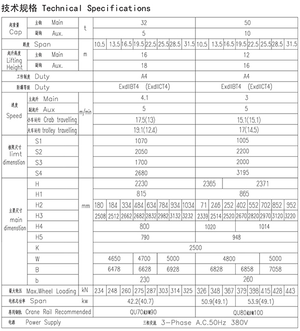 QB型32、5~50、10t防爆吊钩桥式起重机