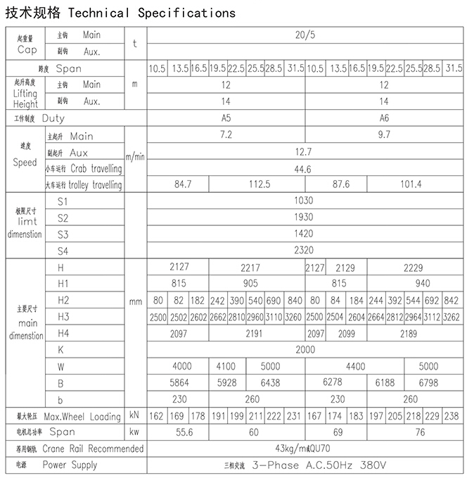 QY型20、5t绝缘吊钩桥式起重机