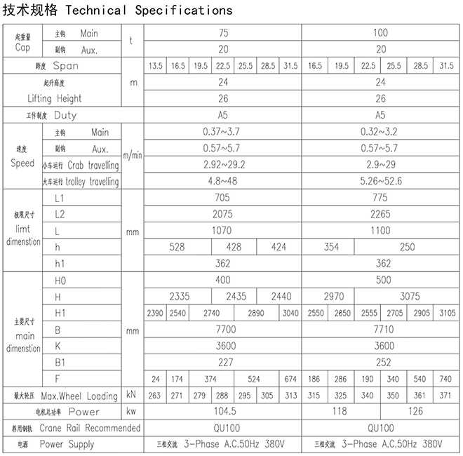 80~100t欧式吊钩桥式起重机