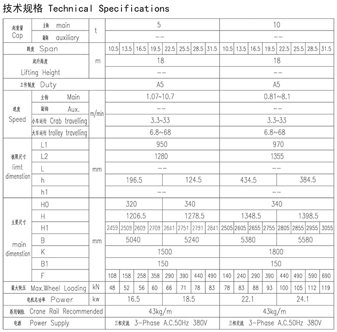 5~10t欧式吊钩桥式起重机