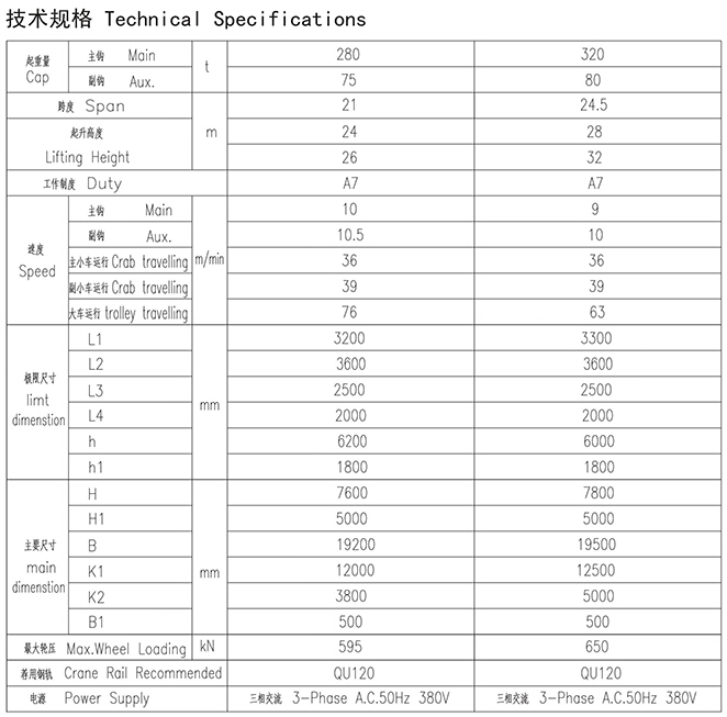 YZ型280、75~320、80t铸造起重机
