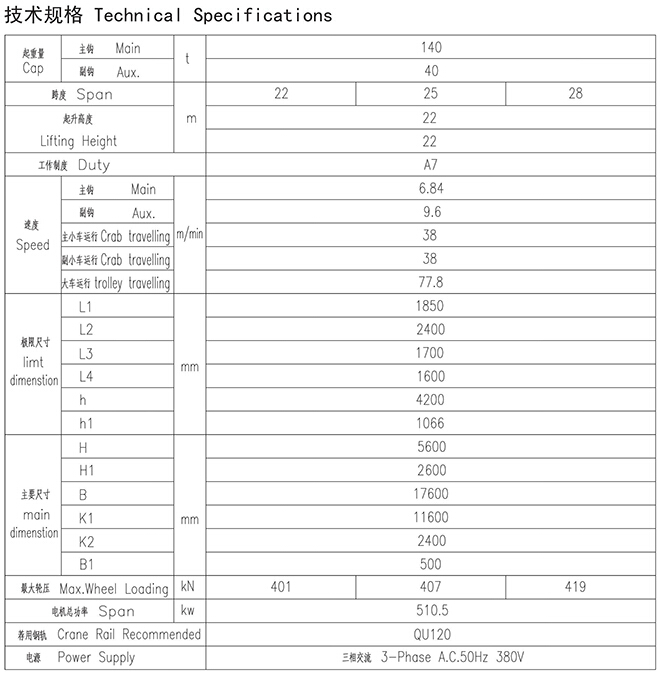 YZ型140、40t铸造起重机
