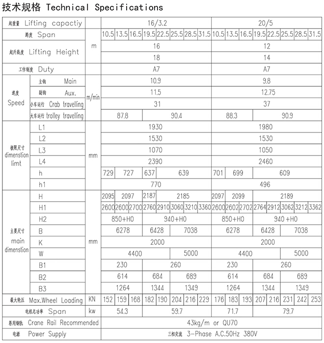 QDY型16、3.2~20、5t冶金起重机
