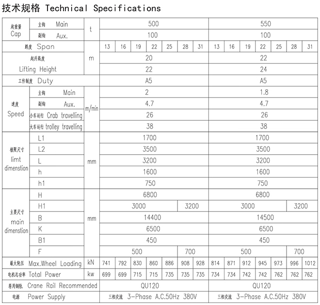 QD型500、100~550、100t吊钩桥式起重机