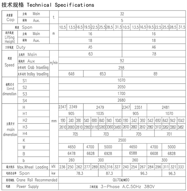 QD型32、5t吊钩桥式起重机