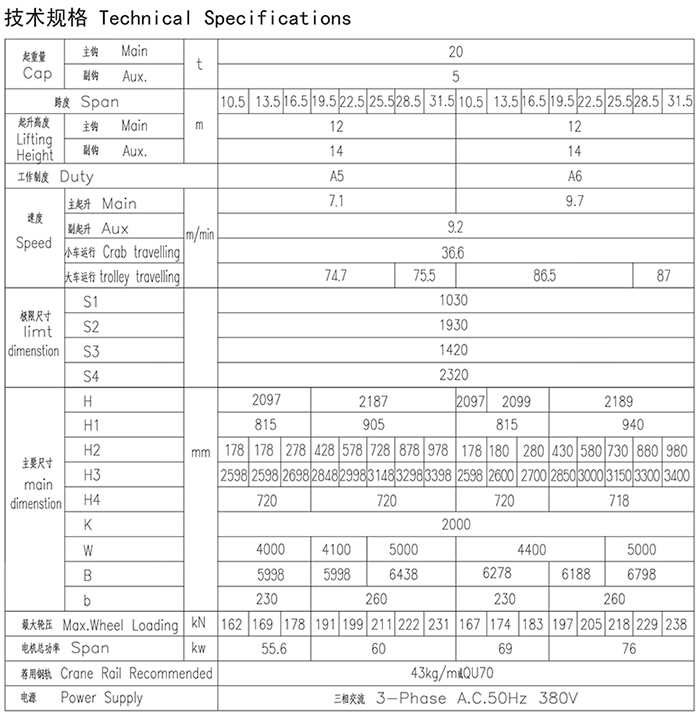 QD型20、5t吊钩桥式起重机
